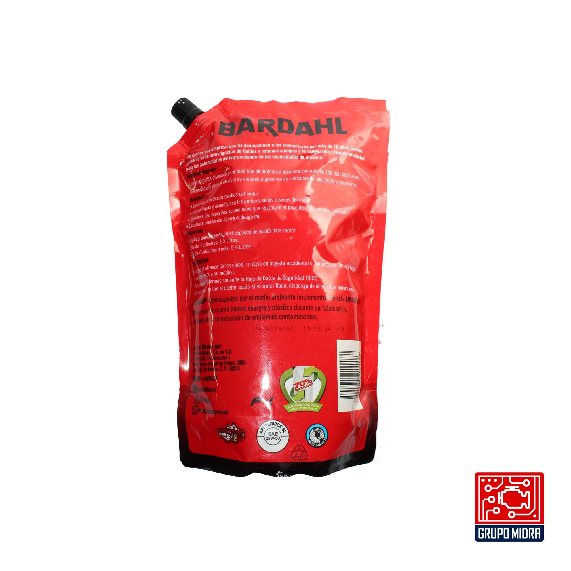 El Aceite Bardahl 25W-50 para más de 100,000 km ayuda a reducir el consumo de aceite, mejora la compresión y protege el motor frente al desgaste propio del uso prolongado.